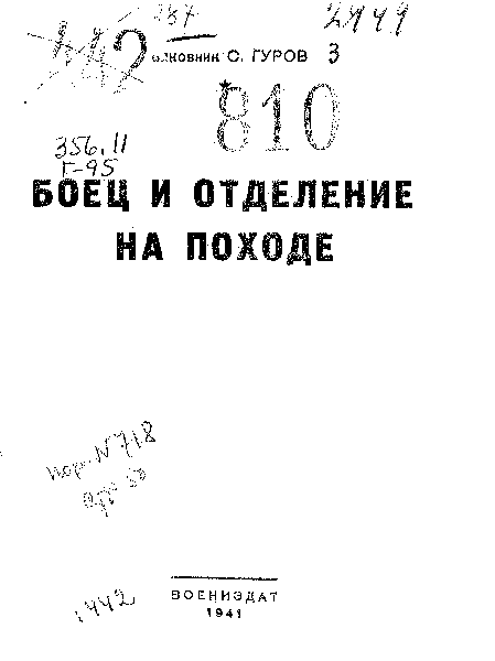 Полковник С. Гуров. Боец и отделение на походе. Популярное изложение вопросов организации марша, подготовки бойца и младшего командира к походу и их обязанностей при движении в колонне и в охранении. Брошюра предназначена для рядового и младшего начальствующего состава Красной Армии.