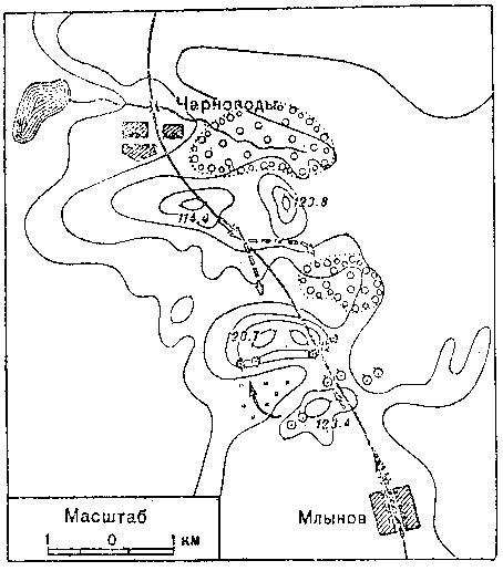 юго-восточнее Чарноводы, выбегают группы противника и двигаются к кустам в лощине.