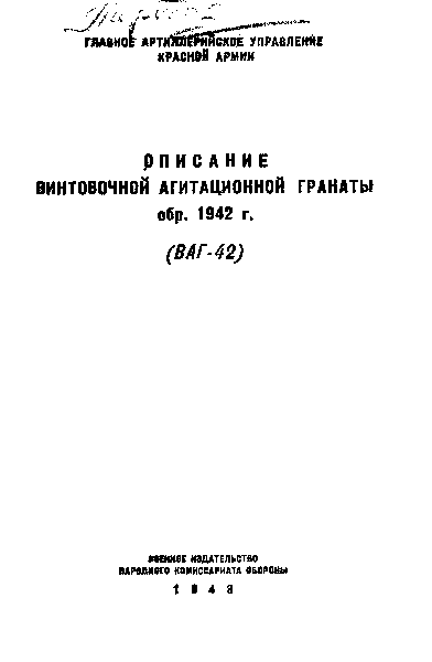 ВИНТОВОЧНОЙ АГИТАЦИОННОЙ ГРАНАТЫ обр. 1942 г.