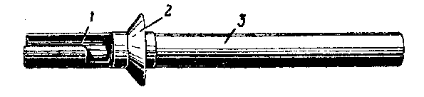 Рис. 6. Мортирка: 1 - коленчатая прорезь; 2 - тарель для отражения газов при выстреле; 3 - трубка |