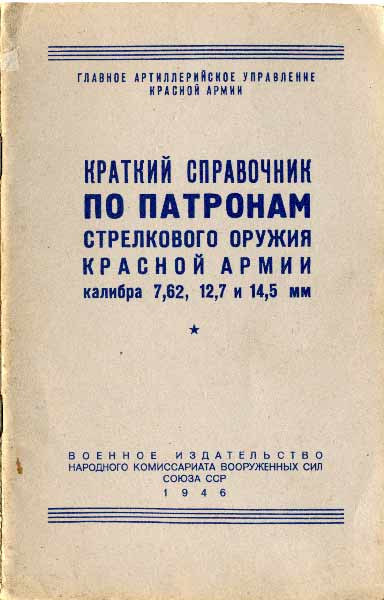 | Общие сведения 7,62-мм патроны с лёгкой пулей 7,62-мм патроны с тяжёлой пулей 7,62-мм патроны с бронебойной пулей обр. 1930 г. (Б-30) 7.62-мм патроны с бронебойно-эажигательной пулей обр. 1932 Г. (Б-32) 7,62-мм патроны с пристрелочно-зажигательной пулей (ПЗ) 7,62-мм патроны с трассирующей пулей (Т-46) 7,62-мм пистолетные патроны с обыкновенной пулей 7,62-мм пистолетные патроны с бронебойно-зажигательной пулей обр. 1941 г. 7,62-мм пистолетные патроны с трассирующей пулей 7,62-мм револьверные патроны 12,7-мм патроны с бронебойной пулей обр. 1930 г. (Б-30) 12,7-мм патроны с бронебойно-зажигательной пулей обр. 1932 Г. (Б-32) 12,7-мм патроны с бронебойно-зажигательно-трассирующей пулей (БЗТ) Н,5-мм патроны с бронебойно-зажигательнои пулей обр. 1932 Г. (Б-32) 14,5-мм патроны с бронебойно-зажигательной пулей обр. 1941 Г. (БС-41) Приложения 1. Таблица весовых, линейных и балистических данных 7,62-мм винтовочных патронов 2. Таблица весовых, линейных и балистических данных 7,62-мм револьверных и пистолетных патронов 3. Таблица весовых, линейных и балистических данных 12,7-ми и 14,5-мм патронов |