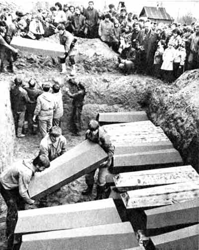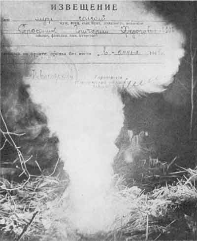 в Долине смерти. Из каждого похода в Долину смерти я привозил по 30--40 катушек отснятой пленки. Снимал и сам процесс поисков, и захоронения погибших, снимал у их родственников, на встрече оставшихся в живых ветеранов. Так сложился большой цикл фотографий, объединенных одной, такой важной для меня темой. Потом появилась мысль сделать фотокнигу. Работа над ней заняла целый год. Фотографии отбирал жестко, по меркам высшей к себе требовательности. Кому ни показываю -- на глазах слезы... Два года назад, собирая дополнительный иллюстративный материал для книги, я побывал в Эстонии у ветерана 2-й ударной, участника сражений в Мясном Бору писателя Г. И. Геродника. Мне очень близки слова, написанные им: "Те путаники, которые, зная о боевом пути 2-й ударной всего лишь понаслышке, бездушно и безответственно повторяли всяческие вымыслы,-- не только искажали историческую правду. Они оскорбляли чувства тех воинов фронта и армии, которые остались живы и продолжали воевать, тех ветеранов войны, которые здравствуют и поныне. Их обвинения звучали кощунственно по отношению к тем воинам-волховчанам, которые покоятся сейчас в братских могилах, которые еще не найдены следопытами и ждут погребения. Они отдали жизнь в очень трудную для нашей страны пору. Свет грядущей Победы еще еле-еле брезжил на горизонте, затянутом мрачными грозовыми тучами. Их очень редко награждали, им еще не салютовала Москва,-- а ведь воевать тогда было намного труднее, чем в сорок третьем, сорок четвертом и сорок пятом годах! Мои новгородские друзья написали мне: "Наш облисполком принял, наконец, решение увековечить подвиг воинов 2-й ударной армии". Я верю, мы, оставшиеся в живых ветераны Любанской операции, в недалеком будущем соберемся у этого обелиска. По данным Советского комитета ветеранов войны, около четверти миллиона солдат и офицеров, павших в годы Великой Отечественной, еще не захоронены. Они отнесены к числу пропавших без вести, а честнее сказать,-- просто забыты. С детства читал в книгах и слышал в фильмах -- "Вперед! Родина вас не забудет!" И до того горько писать о том, что она их уже забывает, а если не принять срочных мер -- забудет навсегда. Следопыты-энтузиасты, какими бы благородными ни были их цели, просто физически не в состоянии захоронить всех павших и еще не преданных земле солдат. Я глубоко убежден, что нужна срочная, безотлагательная помощь государства, местных Советов народных депутатов, не говоря уже об армии -- ведь во все времена считалось позором бросать на поле боя тела погибших воинов! А время бежит -- скоро уже и полвека, как война кончилась, полвека нашей великой Победе. Так неужто и в полувековой этот юбилей мы не сможем с чистой совестью произнести ставшее привычным -- "Никто не забыт, ничто не забыто!"? В. ИЩЕНКО, фотокорреспондент "Известий" Фото Владимира Ищенко