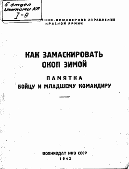 Военно-инженерное управление Красной Армии Как замаскировать окоп зимой. Памятка бойцу и младшему командиру Воениздат НКО СССР Москва, 1942г. |