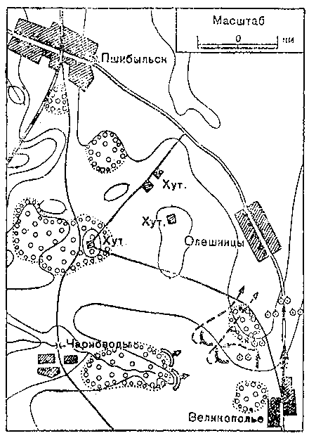 отделения приказал группами, пользуясь кустами, отходить к дер. Олешницы. Отход