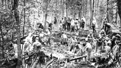 от оживленного шоссе Новгород -- Ленинград в болотистом лесу лежали