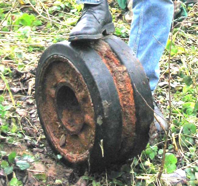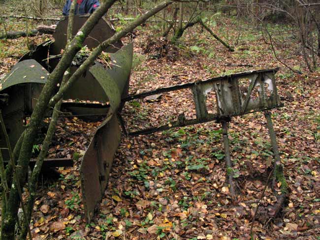 | На опушке леса | Каток от PzKpfw-III | Клеймо на катке "Continental" | Чешская гильза к 7,5cm le. I. G. 18 | Остатки ТБ-3 | ||