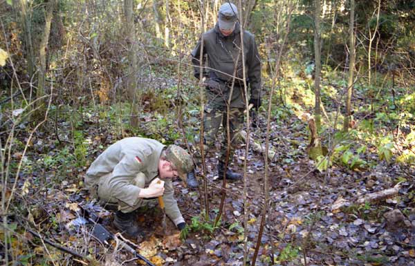 | Раздавленная взрывом обойма от "Маузера" | Гильза от PzB-39 | Пряжечки от немецкого противогаза | Возвращение | |||